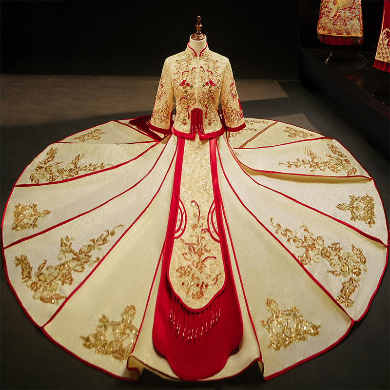Show and the bride 2022 The new golden Chinese wedding gown show kimono wedding dress with a slim and respectful wedding dress