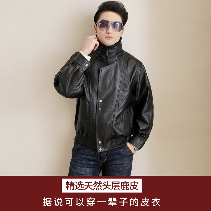 Deer Pippa men's leather Air Force Pilot leather jacket Short-collar jacket Autumn winter Harley Locomotive Leather man