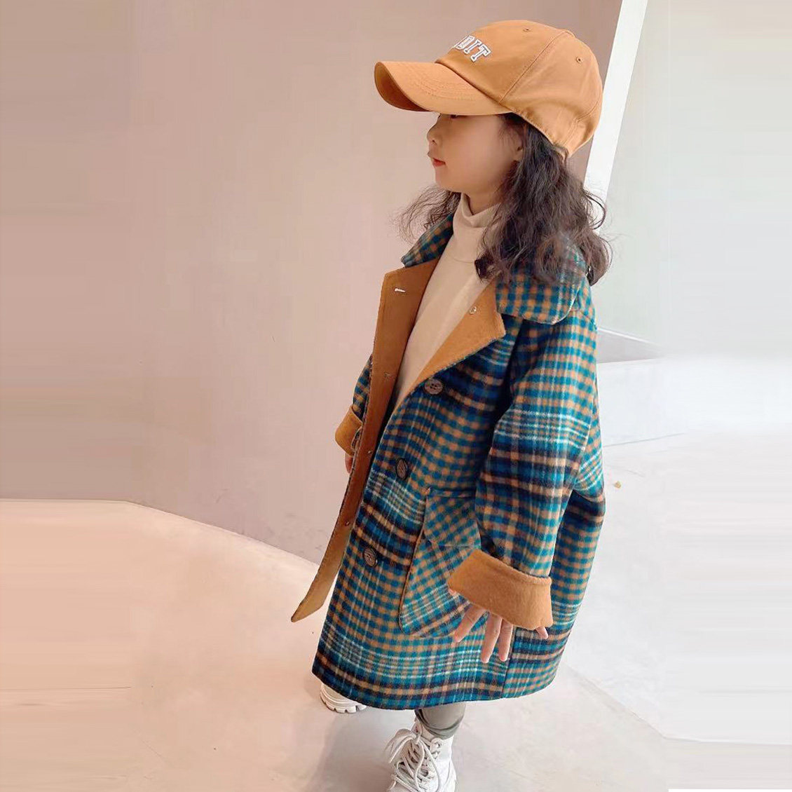 Han Edition Baby Children's Cashmere Coat Boy and Girls New Model Loose Middle-Sided Wool Cover Tide