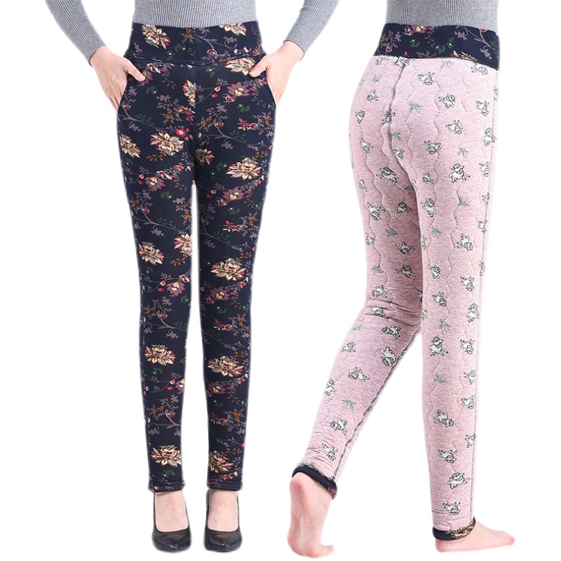 Middle Aged Camel Suede Cotton Pants Woman Moms Dress Winter Plus Suede Thickened Large Size High Waist And Outside Wearing Lady Warm Pants