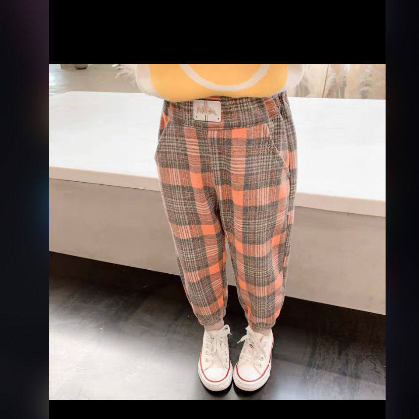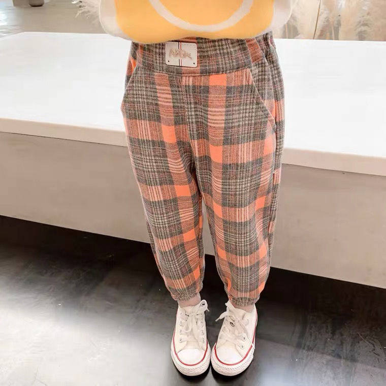 Girl Spring Autumn Season Pants 2022 New Children Foreign Pie Long Pants Fashion Plaid Outside Wearing Baby Autumn Clothing Casual Pants