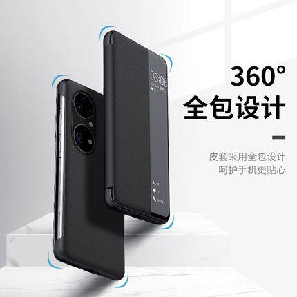 Apply the new Huawei p50 mobile phone protection shell p50pro original leather cover p50p flip type p50por intelligent Windows p50e limited edition high-end all-bag anti-fall upscale pr0 man