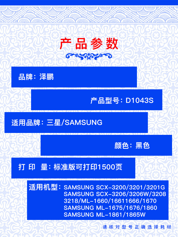 Zepeng applies to Samsung 3201 toner cartridge ml1666 1676 1861 mlt-d1043s SCX3200 3201G ml1660