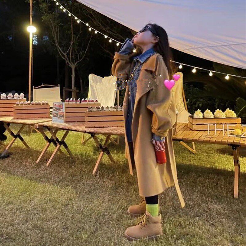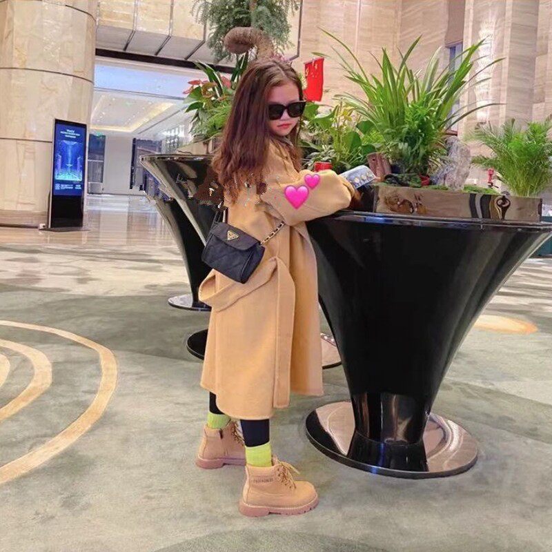Girl's hair coat 2021 Winter new gas double - line button in the elderly children's long fairy coat