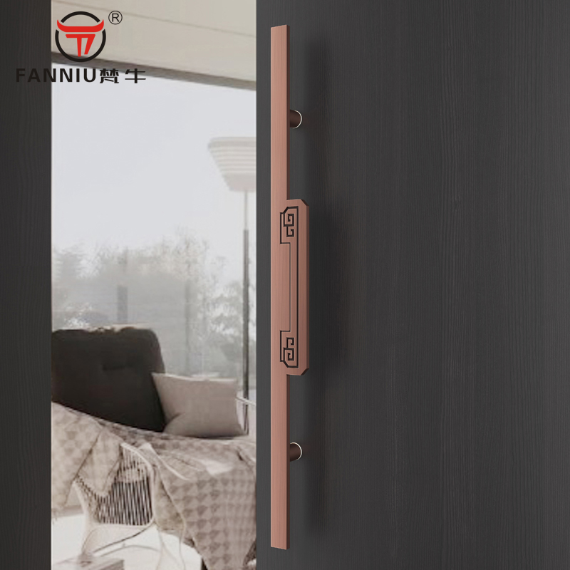 New Chinese-style custom glass door bronze long-pull model office sliding wooden door paired with lettering handle club door handle