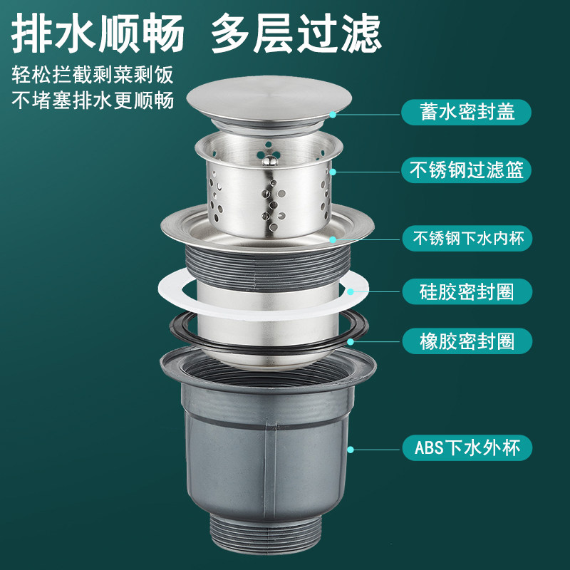 Kitchen stainless steel sink drainer washbasin set washbasin cover leaking plug water pipe fittings 110