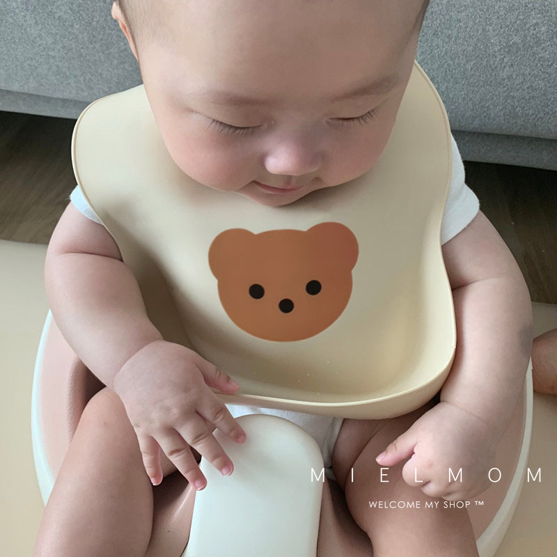 mielmom Korea Ins baby eating containment pocket for small bear waterproof and anti-dirty bib for children Silicone ultra soft food for dinner