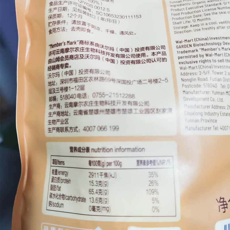 Shanghai Sam Sam shop Member's mark organic Yunnan thin leather walnut 1 5KG bagged-Taobao