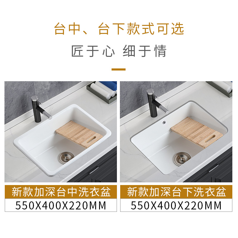 Balcony Taichung Basin ceramic Laundry pool with mobile washboard Basin Embedded washbasin Single slot cabinet Custom-Taobao
