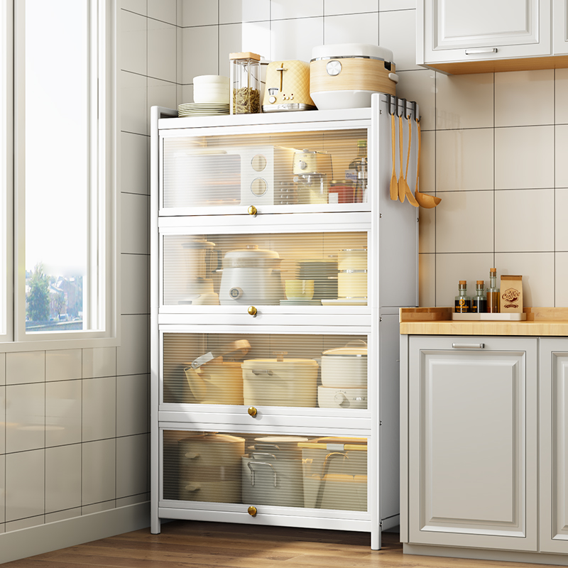 Kitchen with door storage cupboard floor-to-ceiling multi-layer slotted rack multi-functional storage cabinet countertop flip type