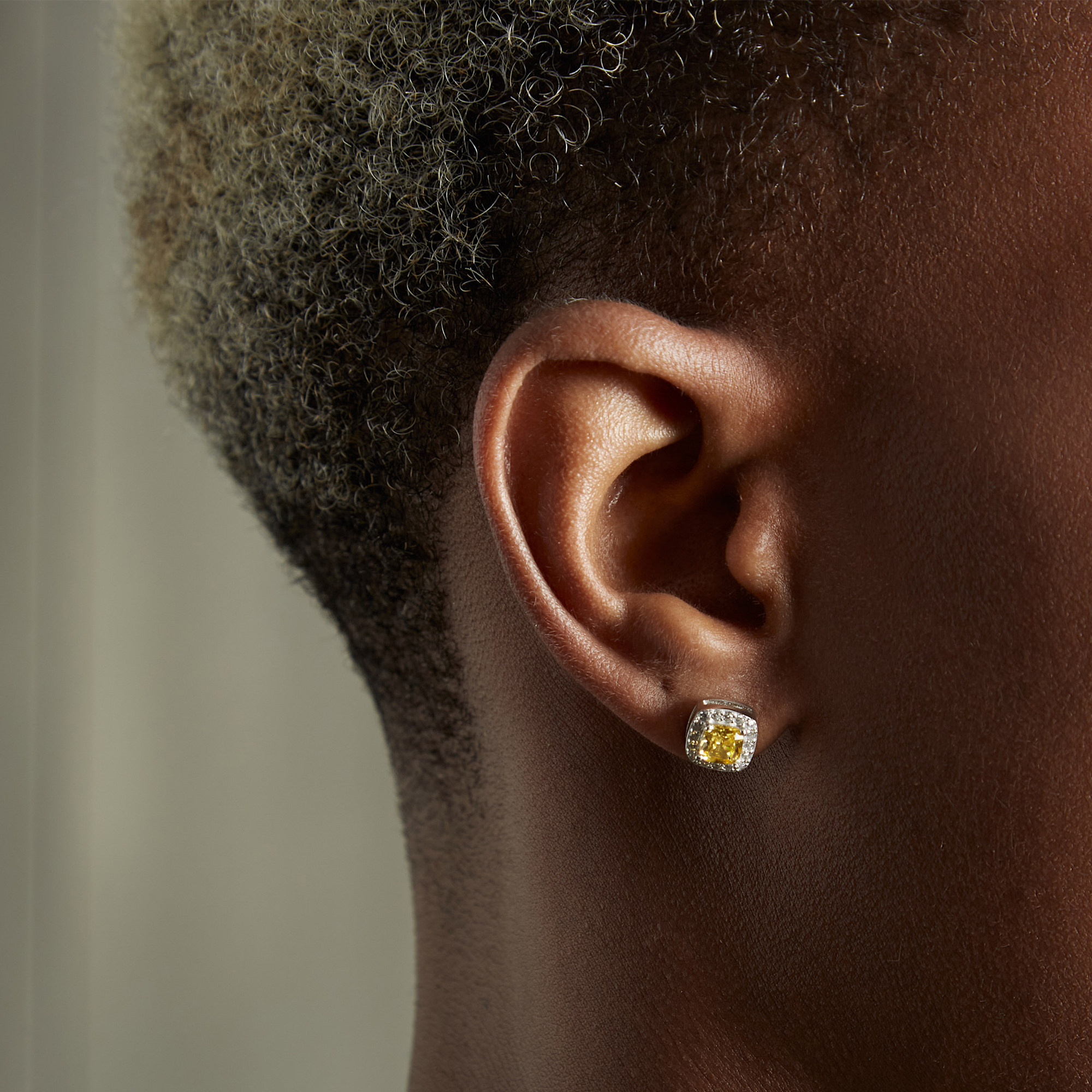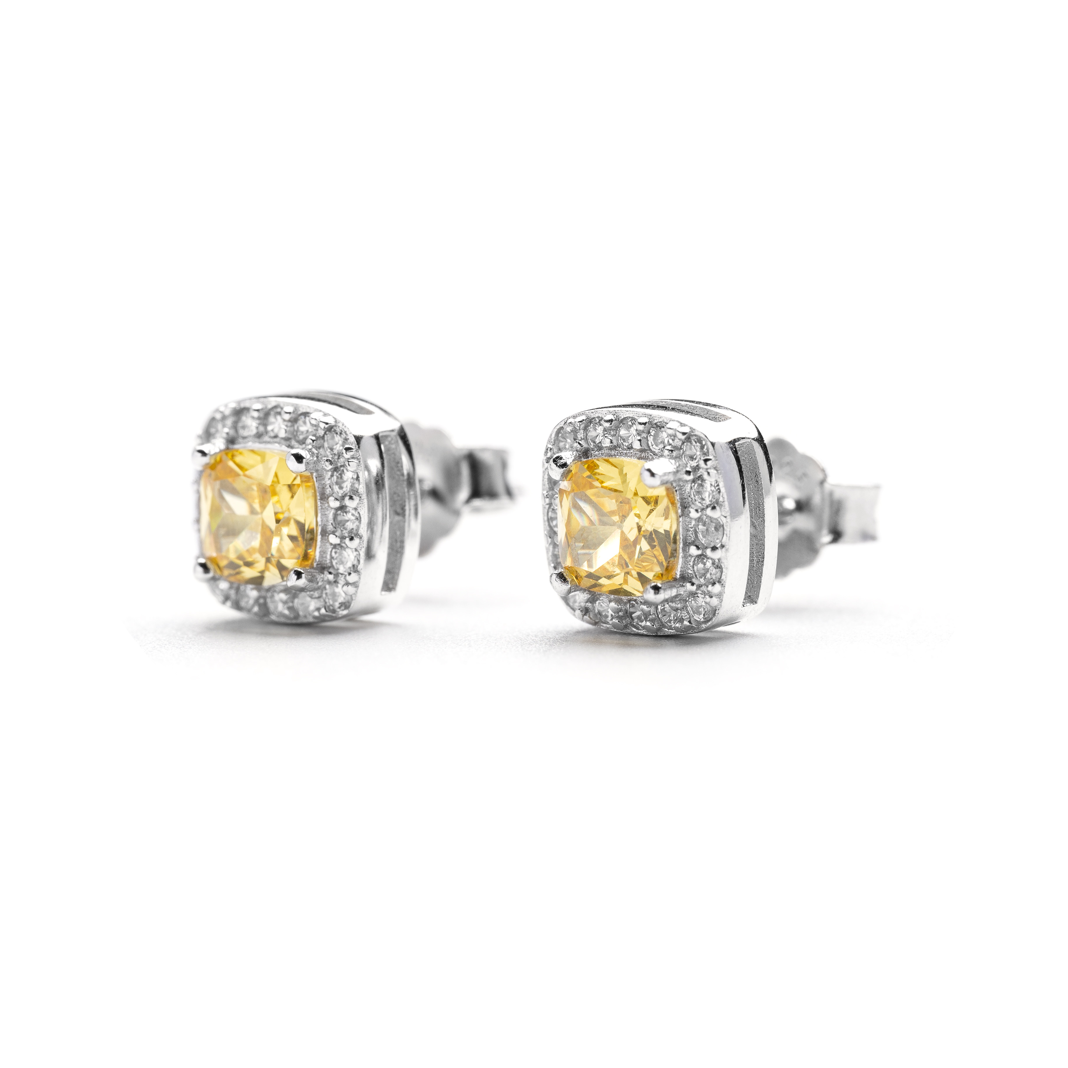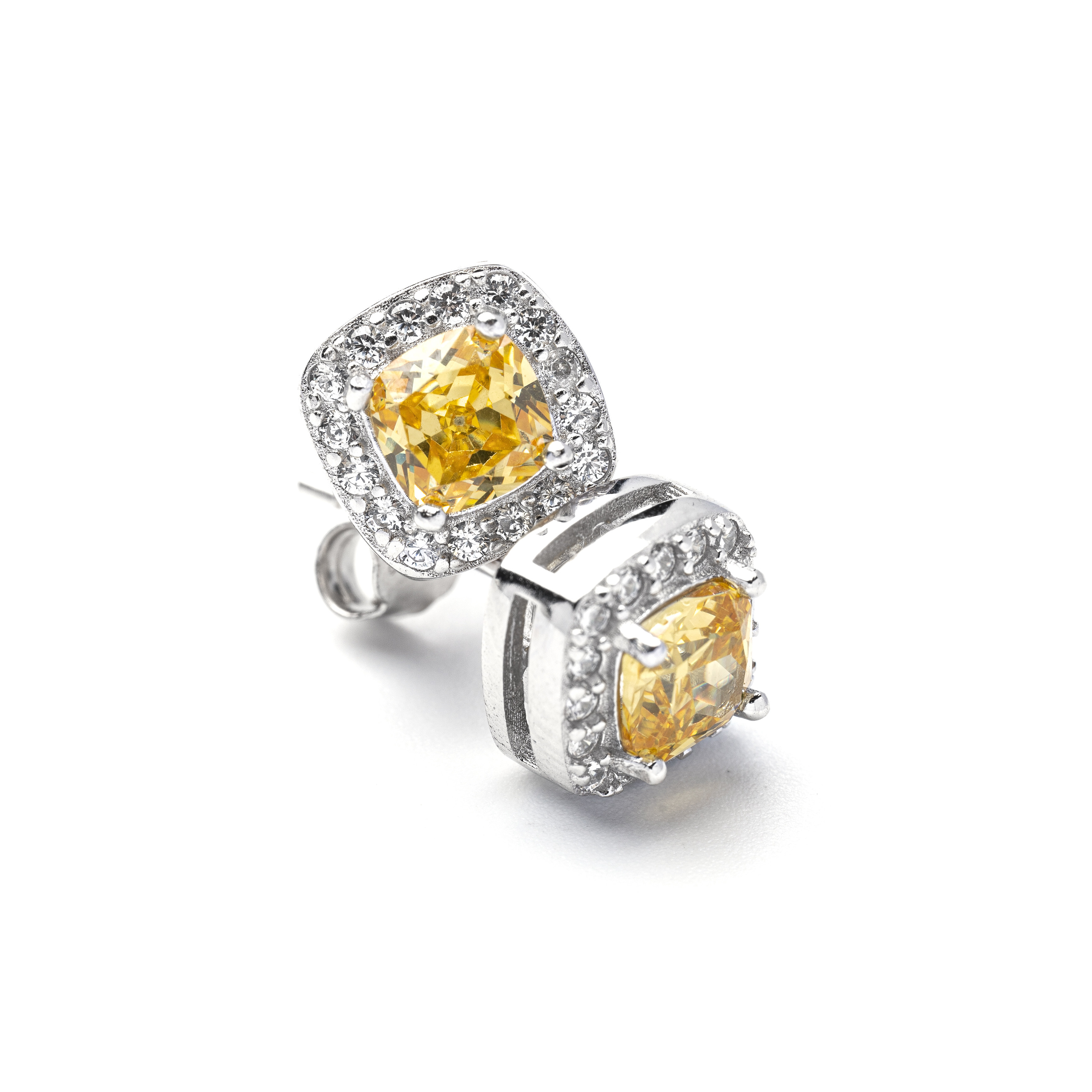 S925 pure silver yellow diamond ice sugar ear pin single S925 pure silver yellow diamond ice sugar ear needle pair