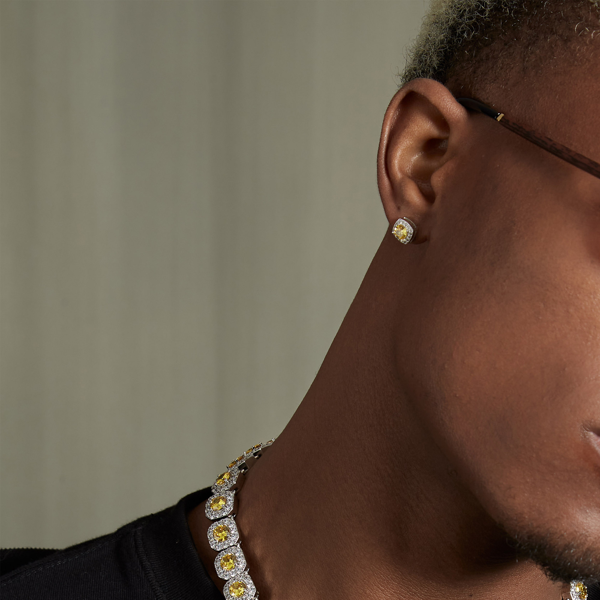 ICEGANG Yellow Diamond Zircon Nails Pure Silver Anti-Allergy S925 Ice Sugar Small crowdsourced European and American hip hop trends ins silver needle