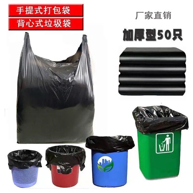 Thickened 80 black sanitation extra large garbage bag commercial vest bag portable plastic moving bag household catering