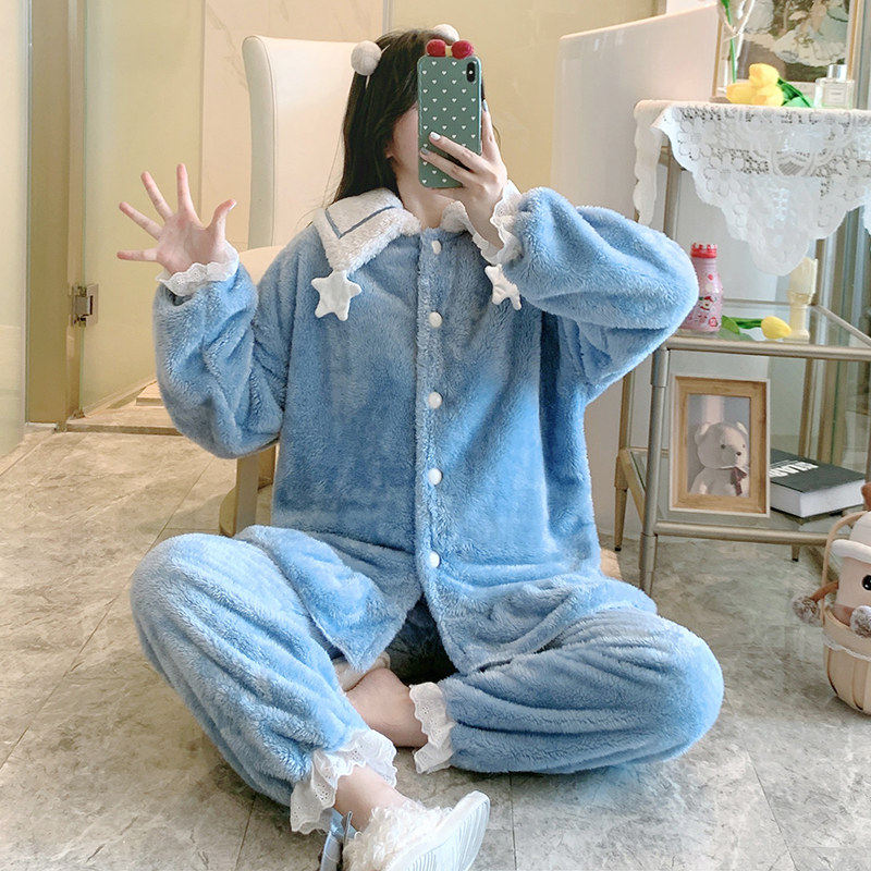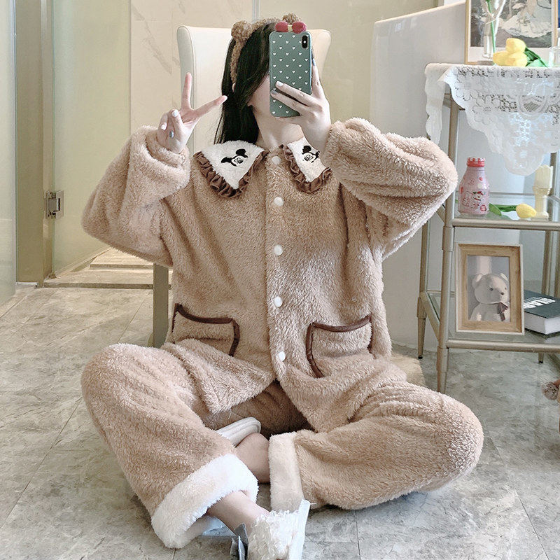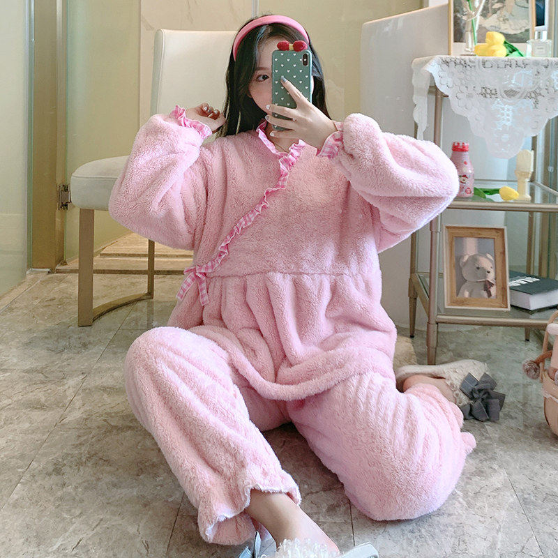 Fall and winter coral vestry lady winter clothes thickened flannel home clothes winter 2021 new suit
