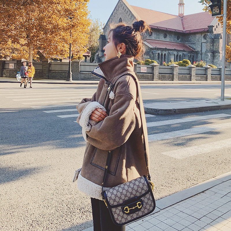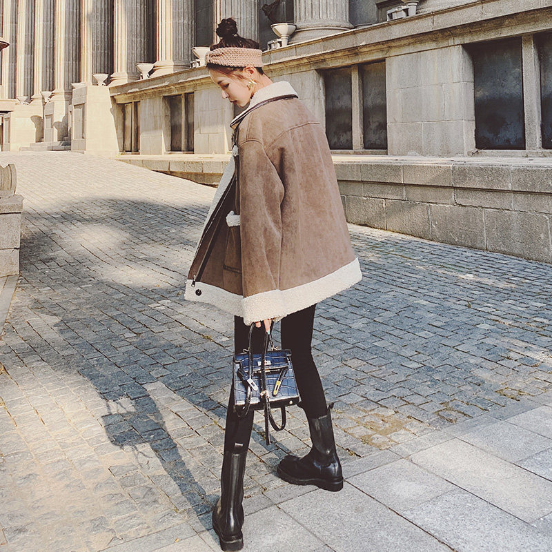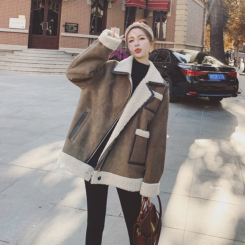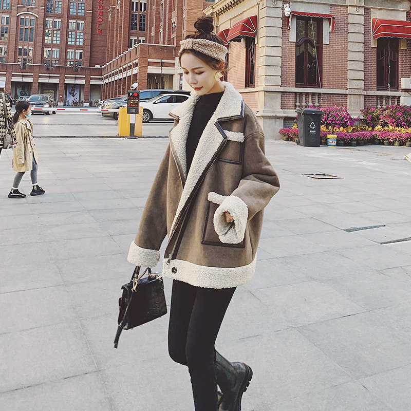 Lamb Wool Jacket Woman 2021 New Autumn Winter Short LOCOMOTIVE CLOTHING LEATHER HAIR Thickened Wool wool suede