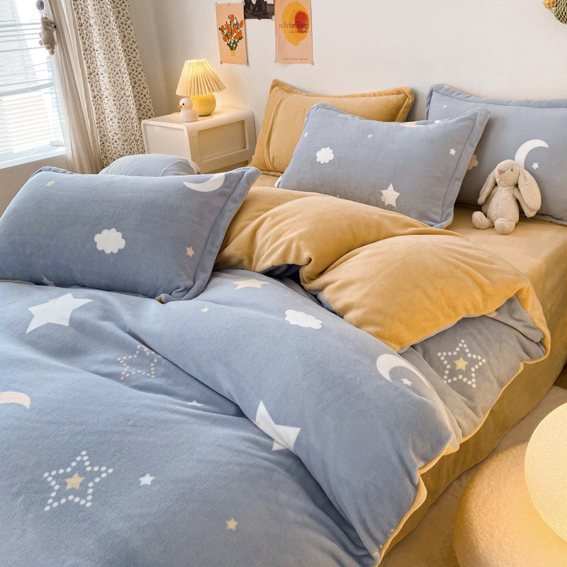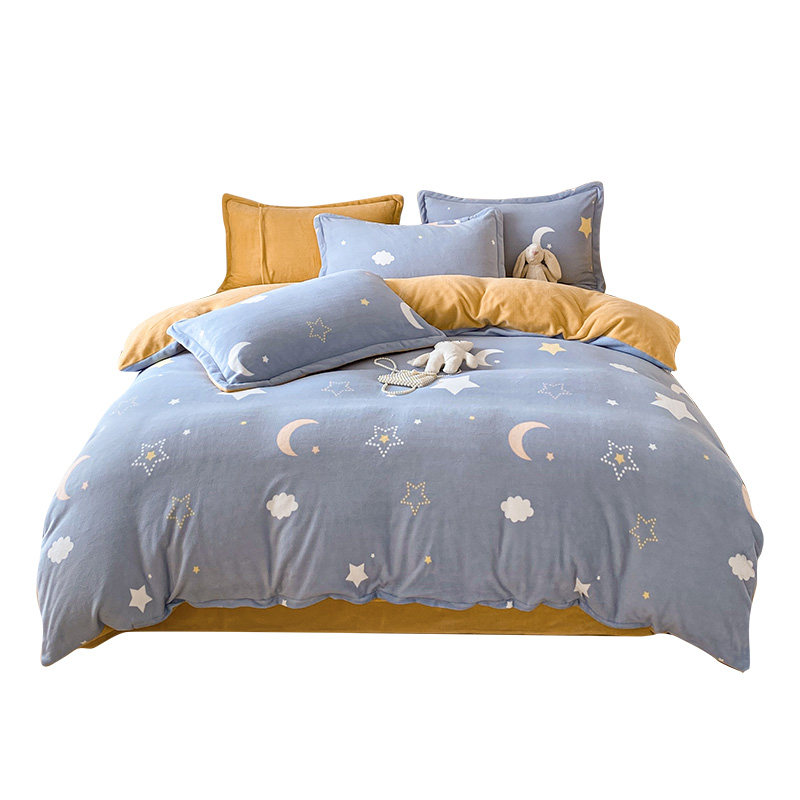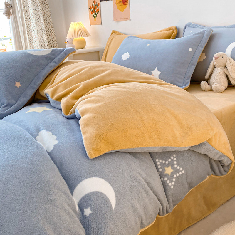 Winter double-sided velvet bed sheet four-piece milk velvet 180x220 non-shedding anti-static plush quilt cover four-piece set