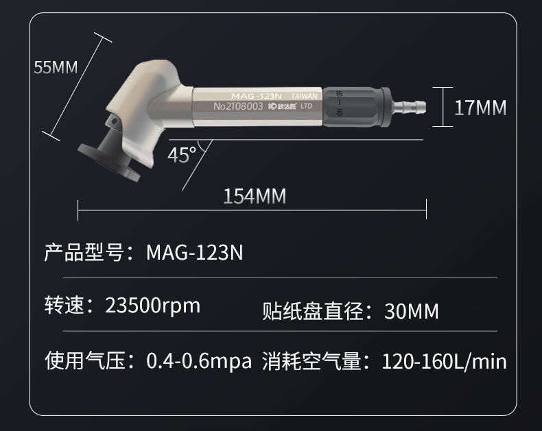 Taiwan pneumatic elbow wind grinding pen MAG-121N123N093 polishing grinding grinding machine polishing machine 45 90 degrees