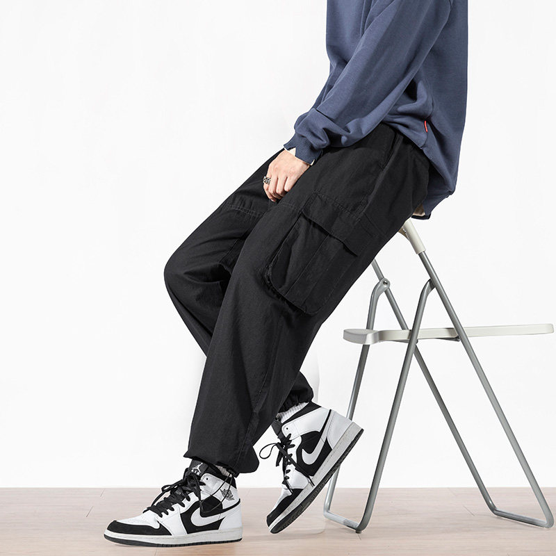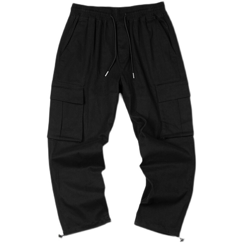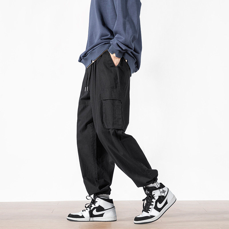 Tooling pants men's spring and autumn cash drawing rope loose bunches legs Tide Cards Winter Plus Suede Black Casual Long Pants