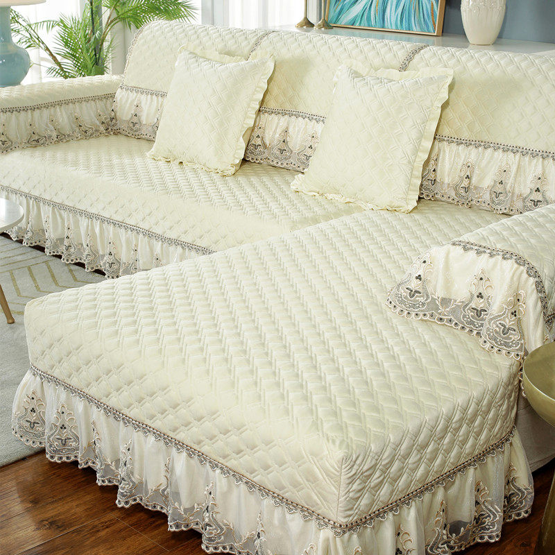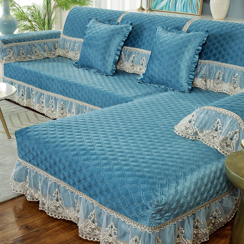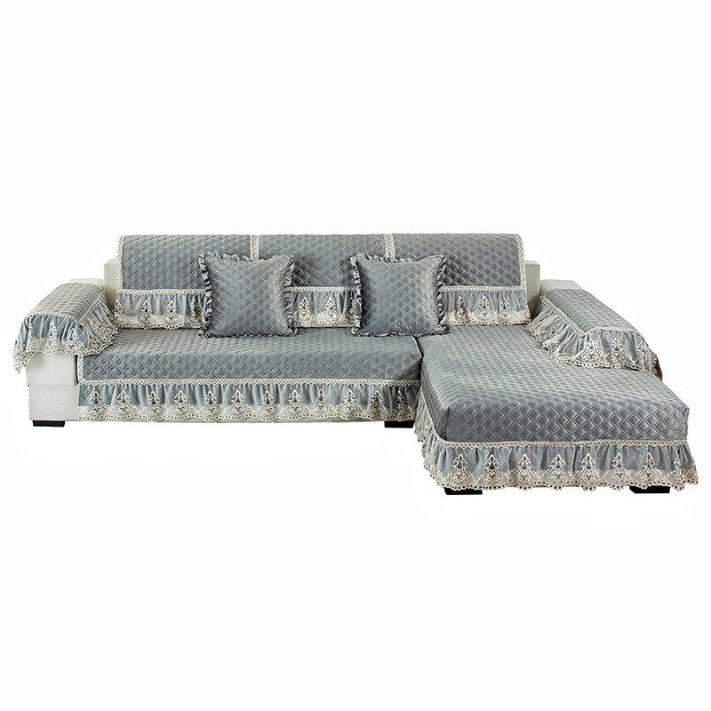 European-style high-end sofa cushion plush thick winter solid color non-slip universal leather sofa cover chaise longue all-inclusive custom