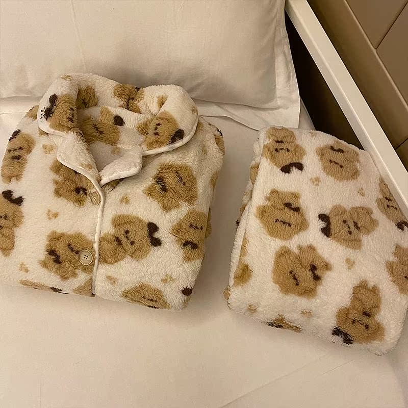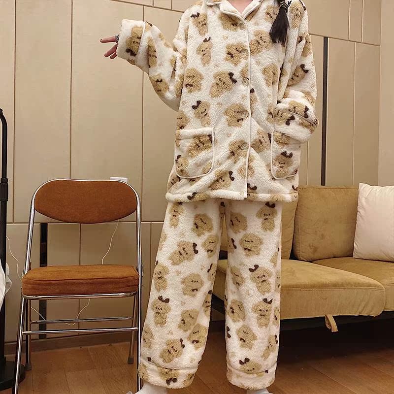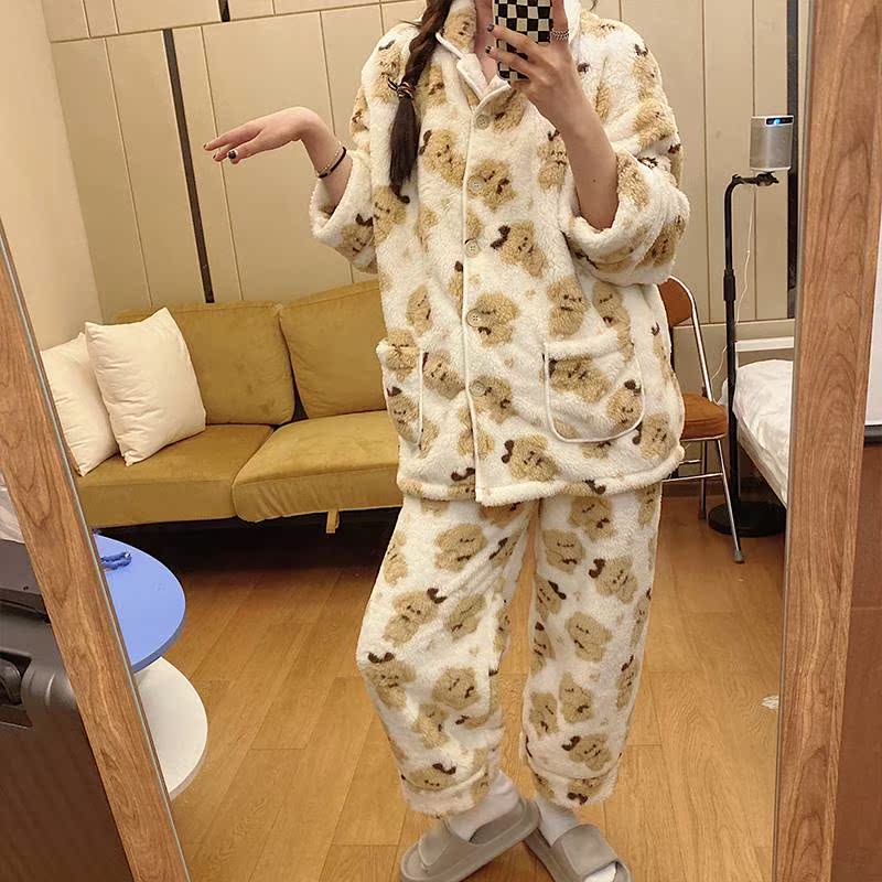 VIRRI CIAGA~ warm partner Korean art cartoon coral fleece pajamas women thickening cute suit