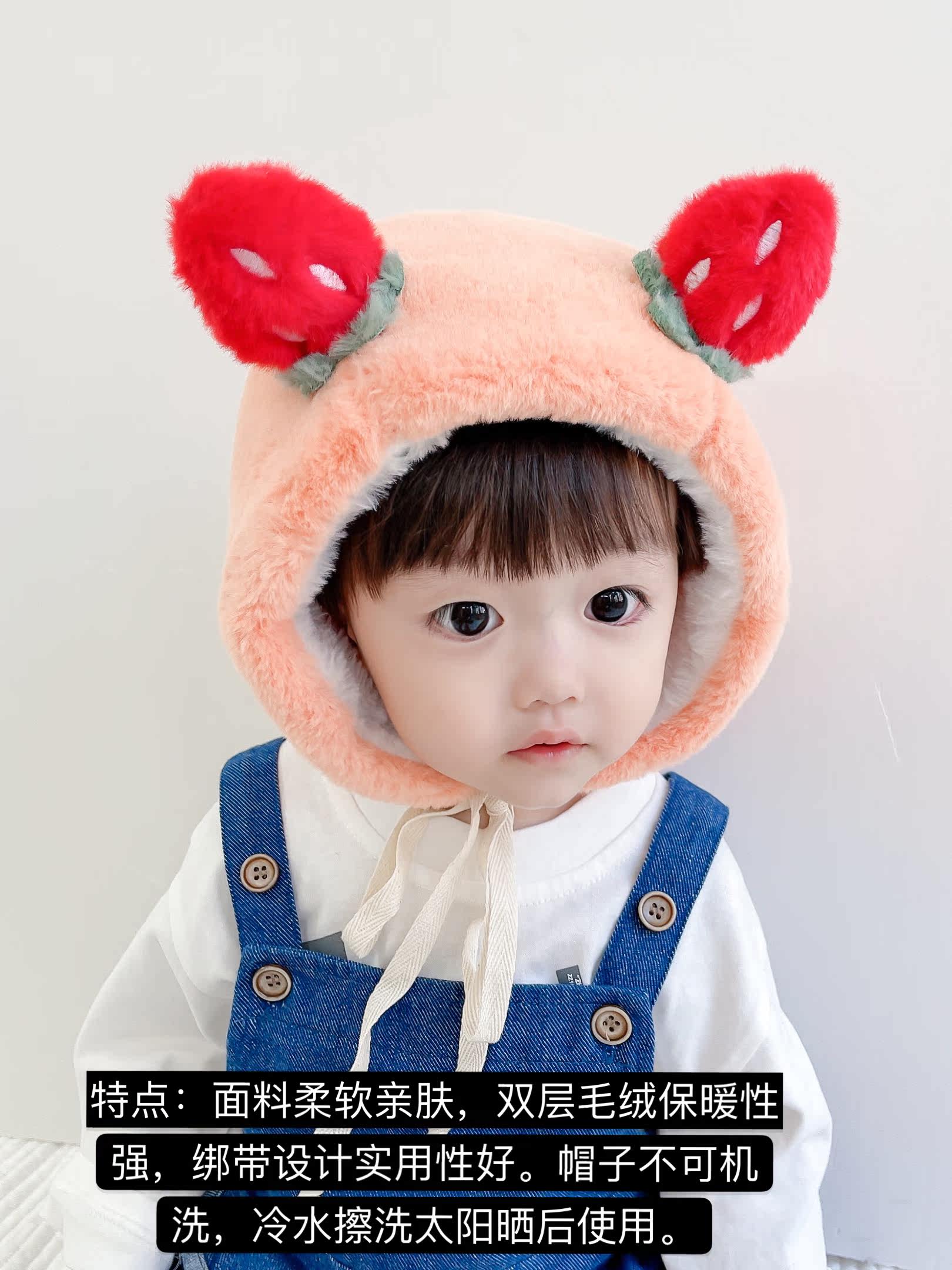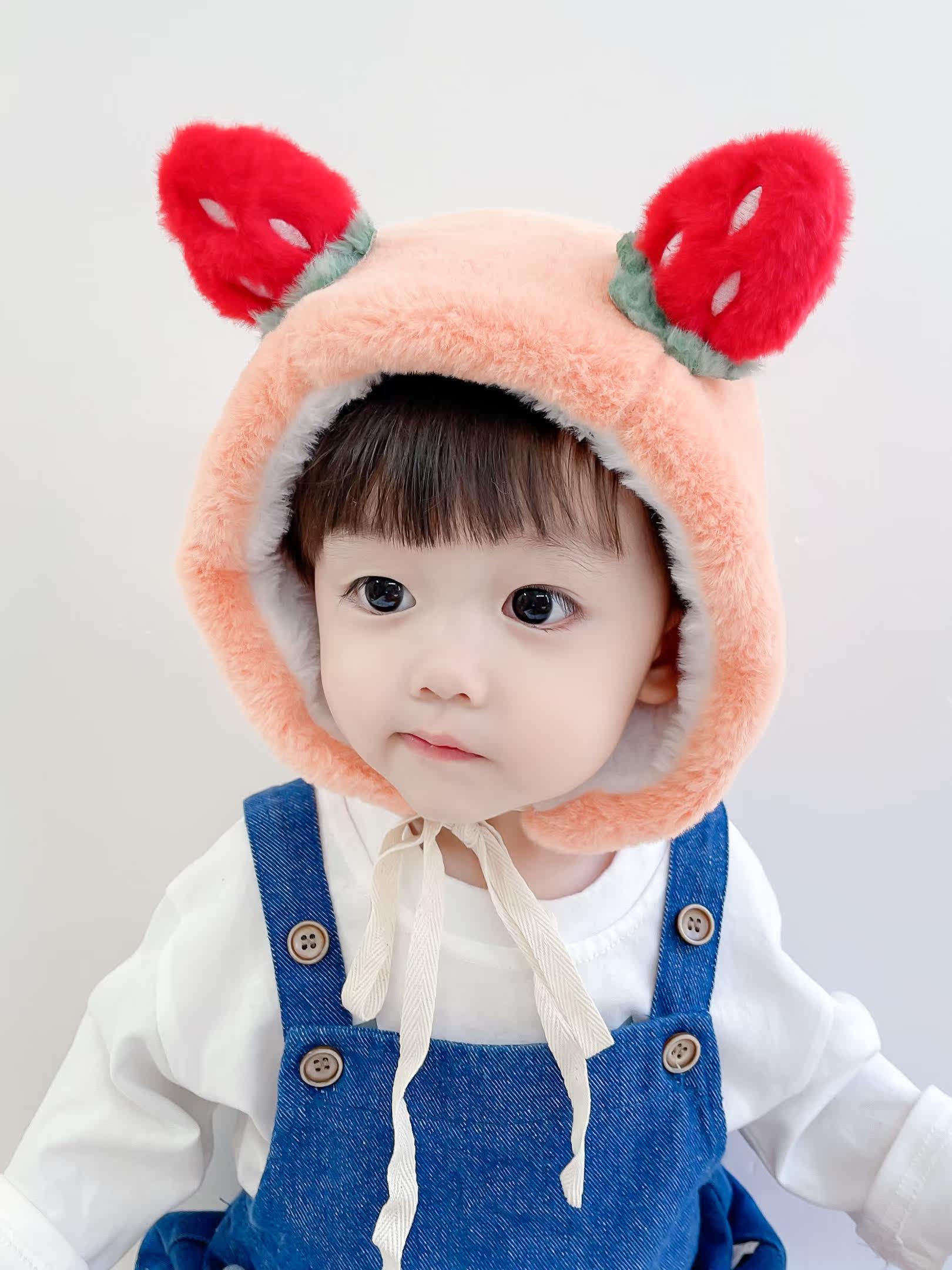 Strawberry ears plush hat double layer