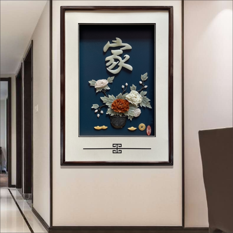 Jade Sculpture Painting Modern Minimalist Light Extravagant Living Room New Chinese Entry Genguan Decoration Painting Upright veranda Hallway Wall Hanging Painting