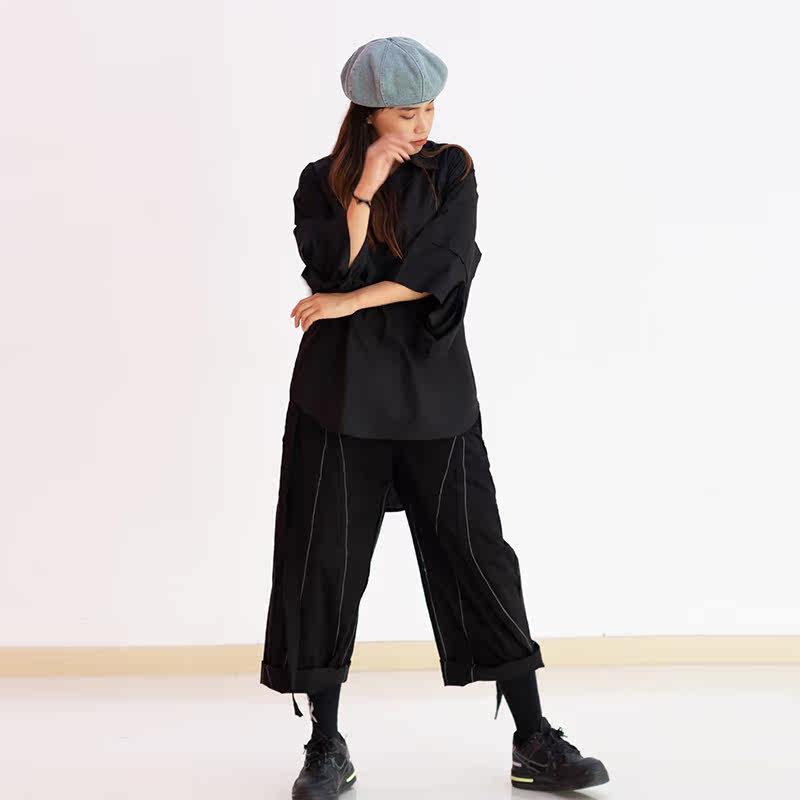 TOXIC Neutral Designer Loose Pure Color Deconstruct Splicing Irregular Sleeve Head Street Tide 100 lap shirt