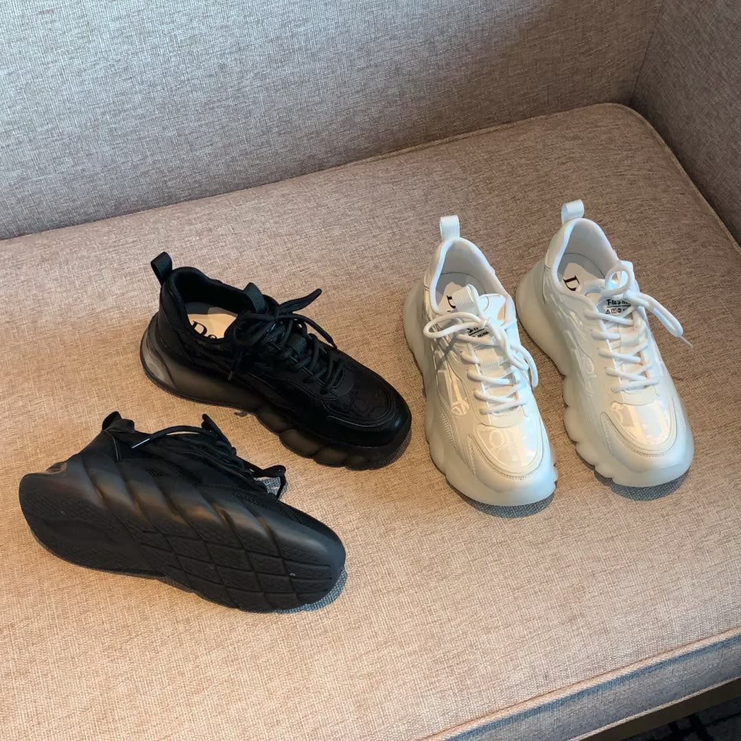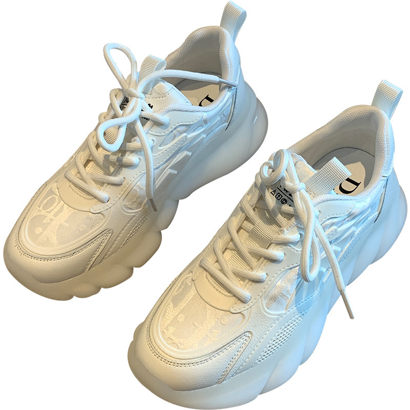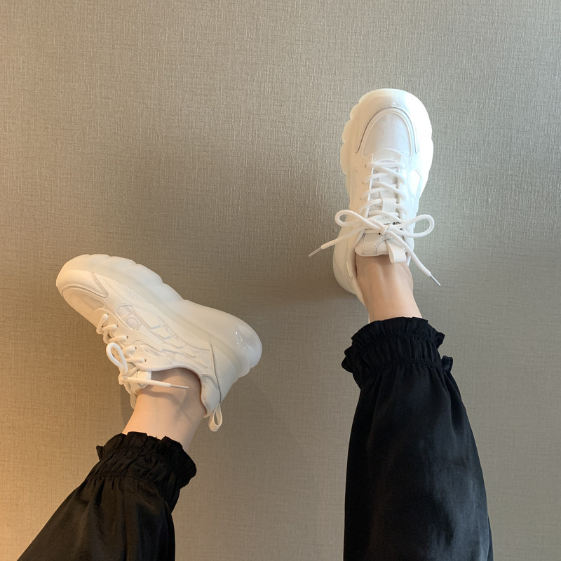 Nicole veve white casual sneakers women's leather lace-up comfortable thick bottom ins net red dad shoes women