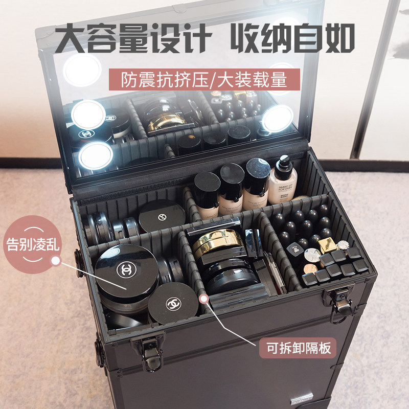 2021 new advanced professional with makeup artist special pull-lever wireless belt lamp with mirror large capacity Advanced makeup case