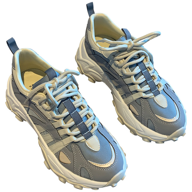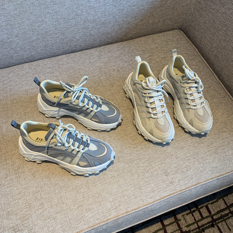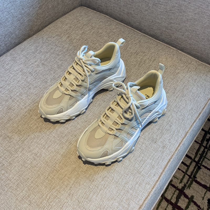 Nicole veve women's sports casual shoes new leather all-match comfortable lace-up thick bottom ins dad shoes women's tide