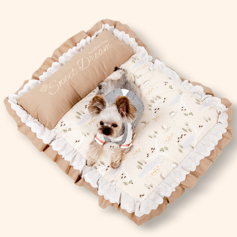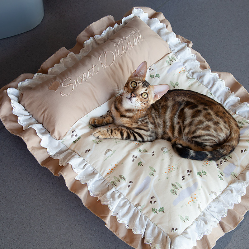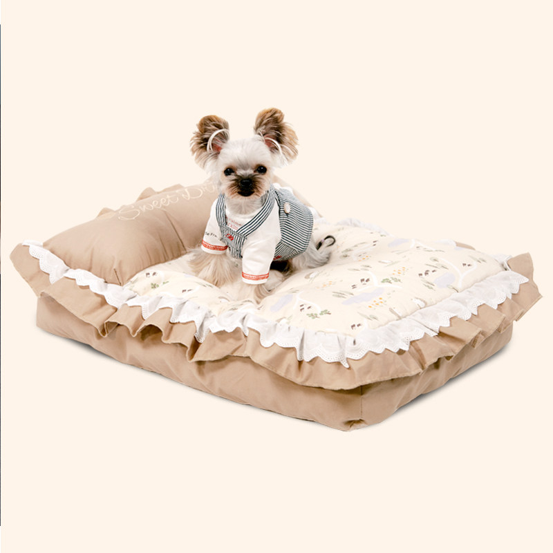 (Rice cake NianGao) princess style lace soft thick cushion kennel cat nest four seasons universal removable washable