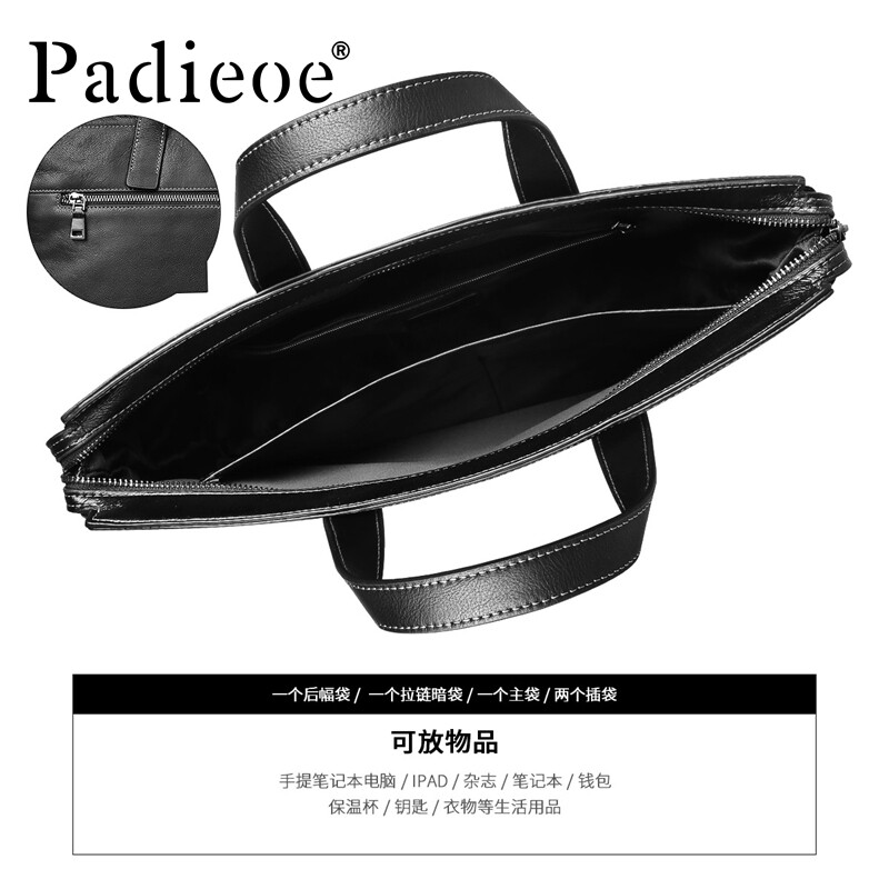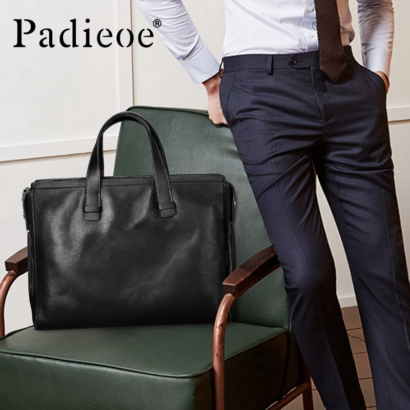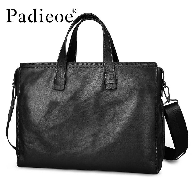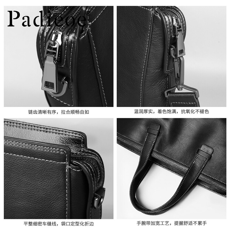 PADIEOE men's briefcase genuine leather handbag men's bag single shoulder skewed satchel head layer cow leather business computer bag