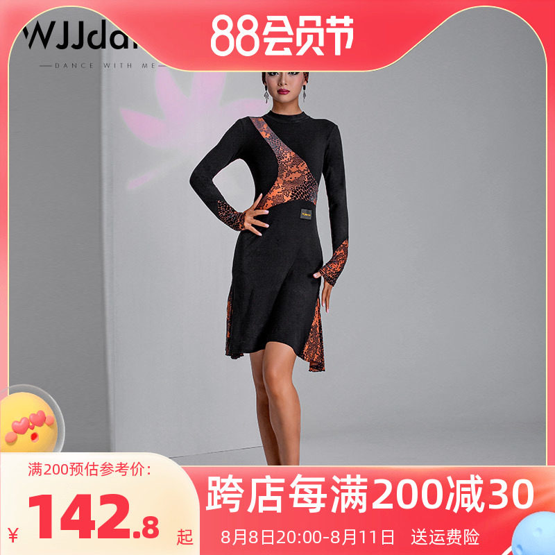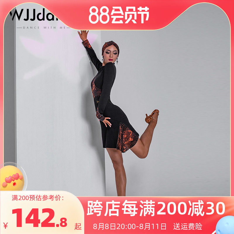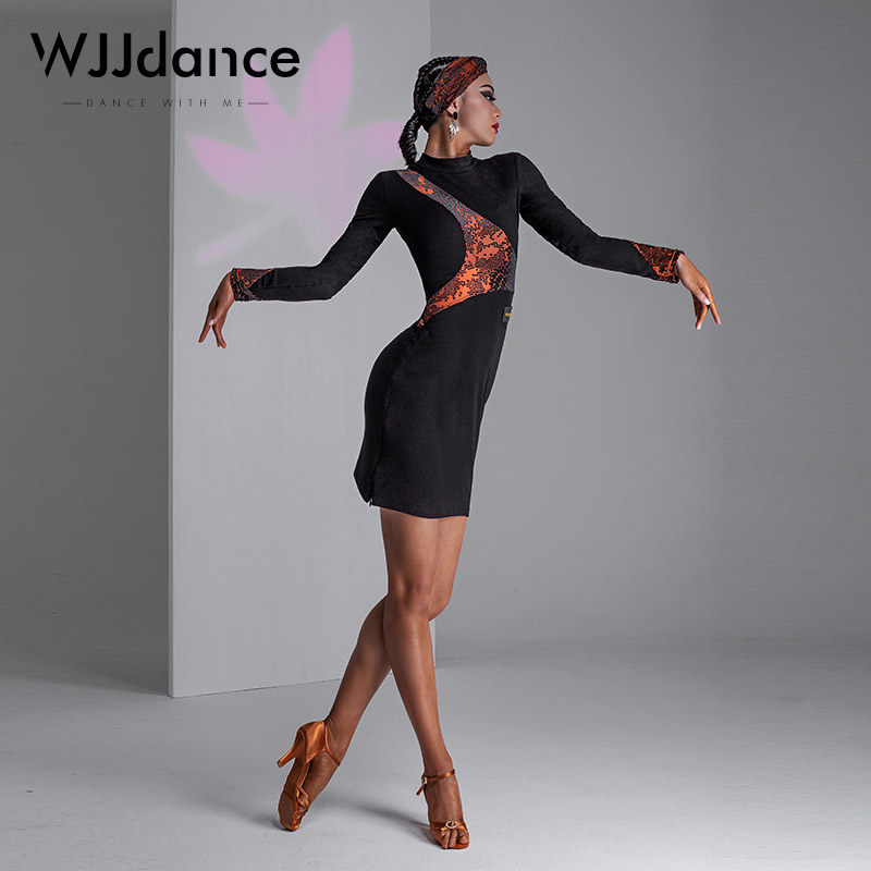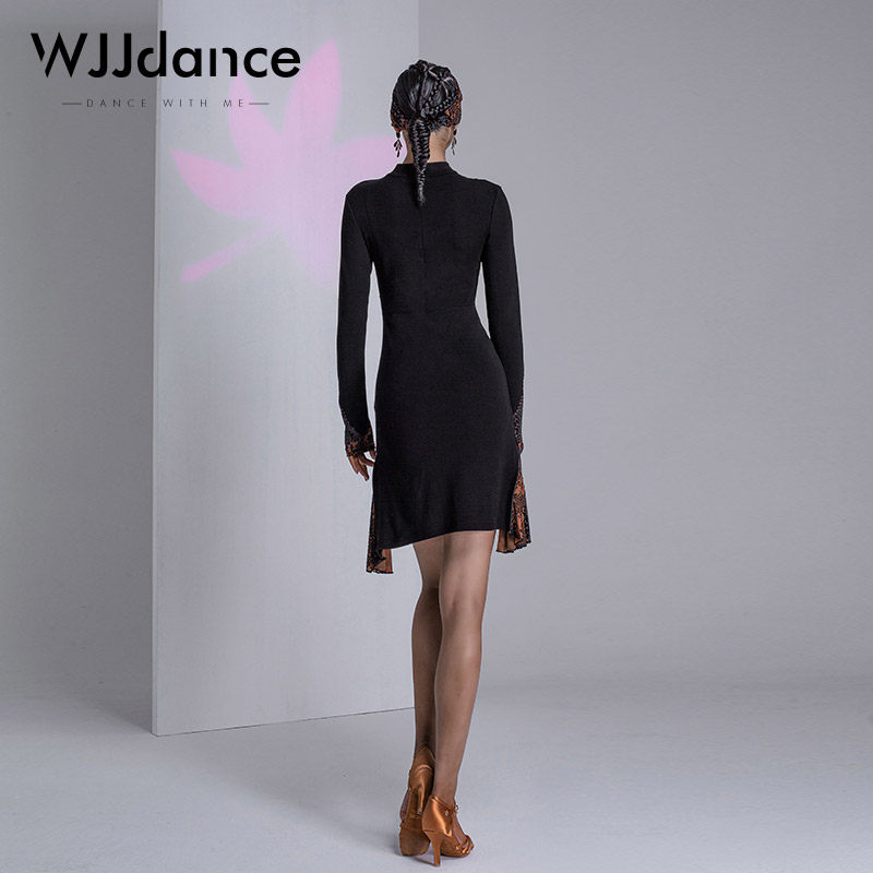 WJJdance Latin dance Dress Women 2022 New Grinding Wool splicing velvet Little Neckline National standard Practice Costume