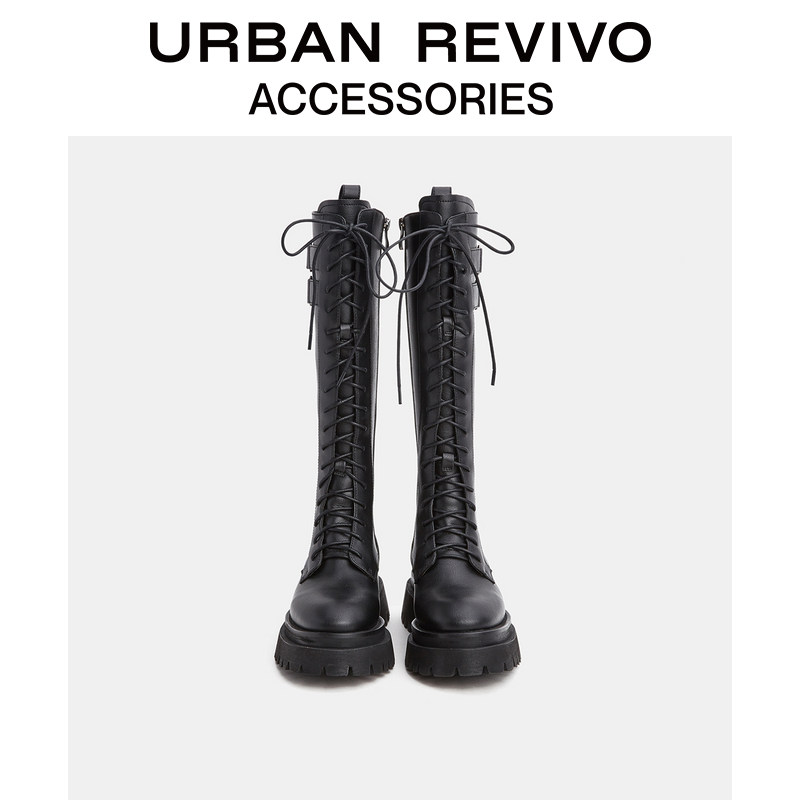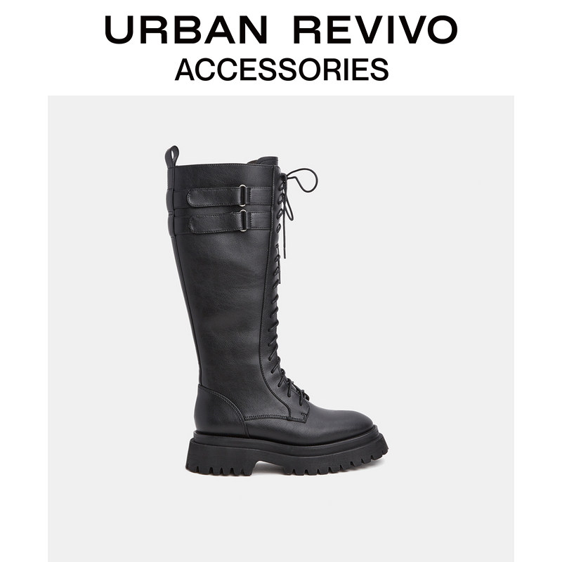URBAN REVIVO2021 autumn winter new lady accessories Salt series Cool Riding Boots AW40BS2N2003