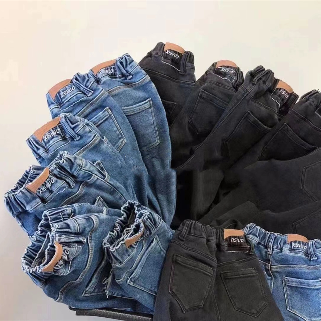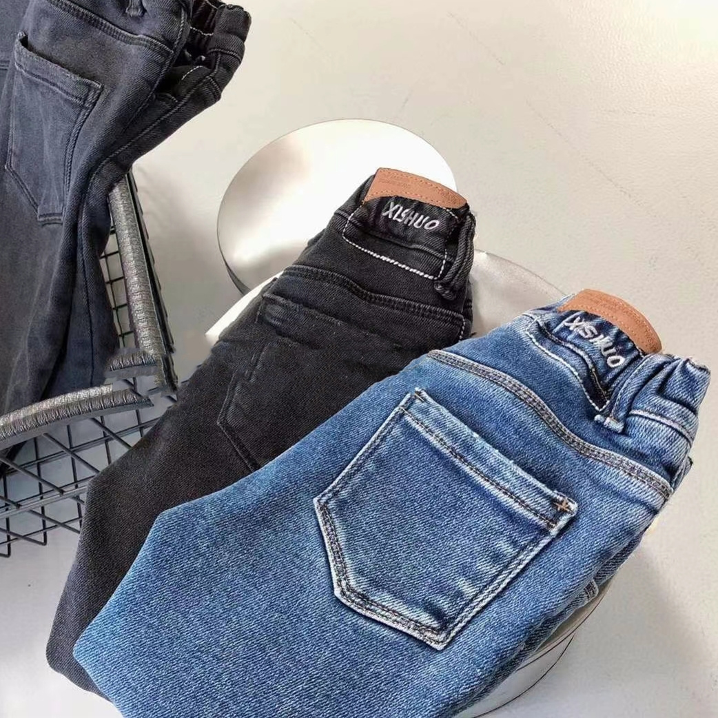 South Korean children's clothing children plus suede jeans 2021 Winter new male and female skintight pencil pants CUHK Scout pants