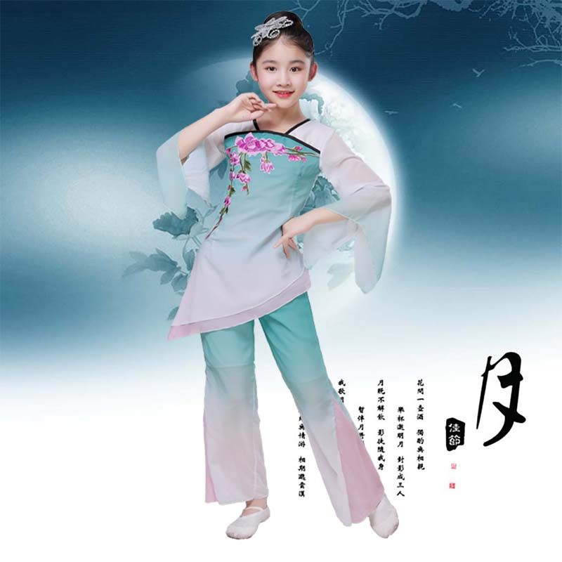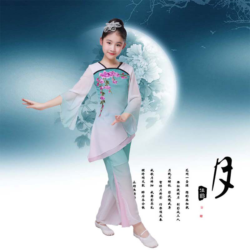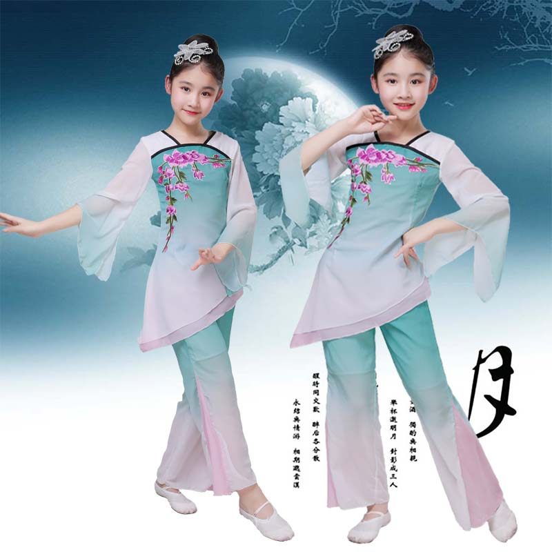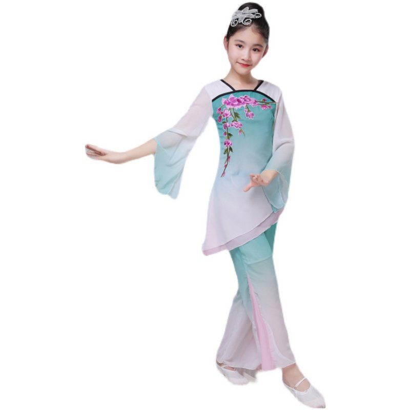 Children's classical dance costume floating female fan dress young children dance suit Jiangnan umbrella dance new Yangnan song suit