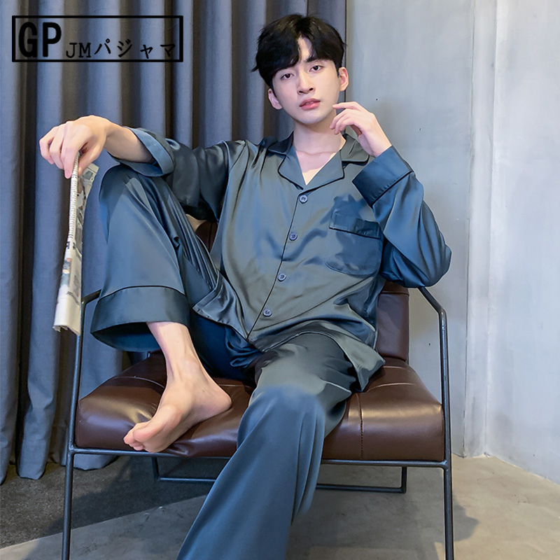 Japan GP ice silk pajamas men's summer long-sleeved silk thin section large size home clothes spring and autumn suit