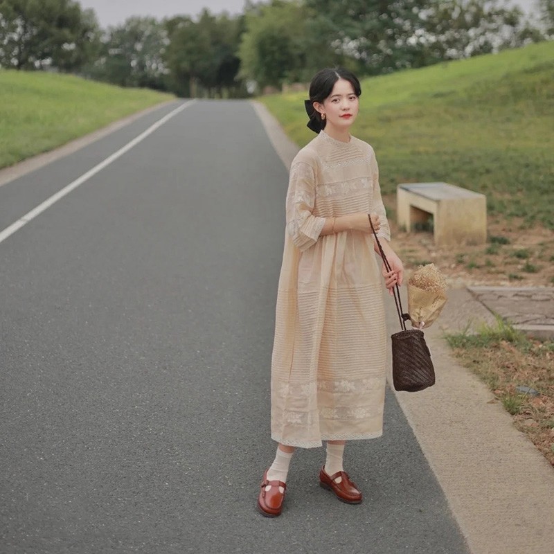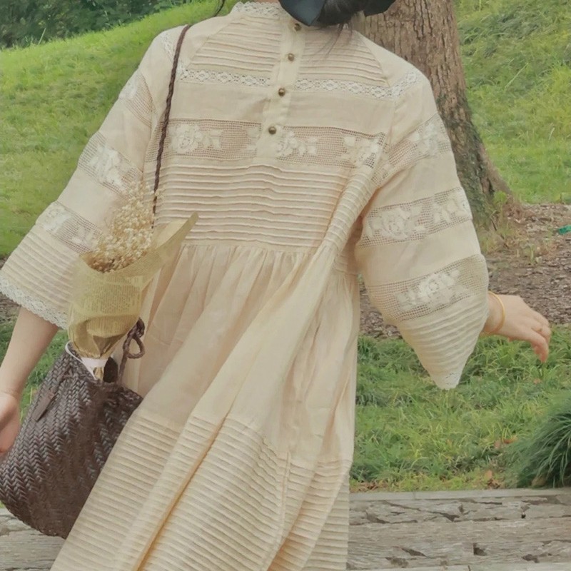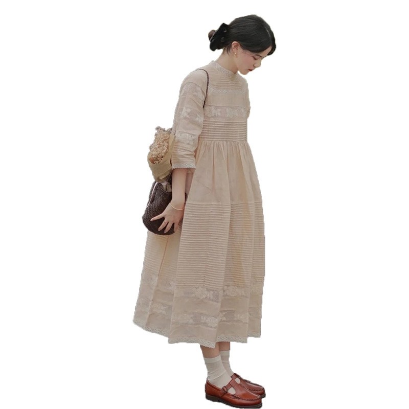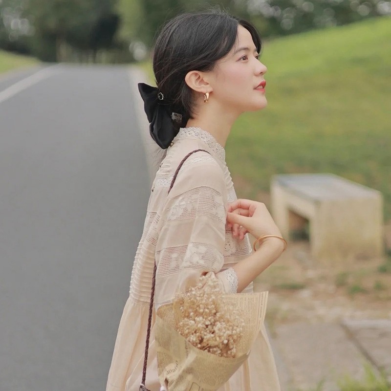 2022 new Hong Kong-style retro chic high-end bellflower French lace embroidery palace style dress women's summer