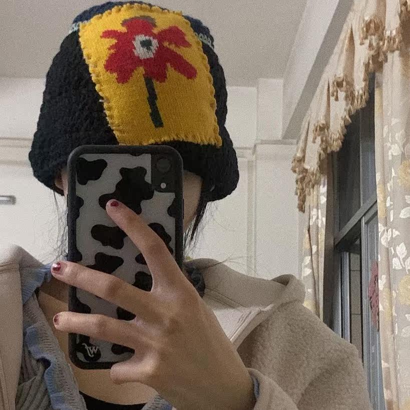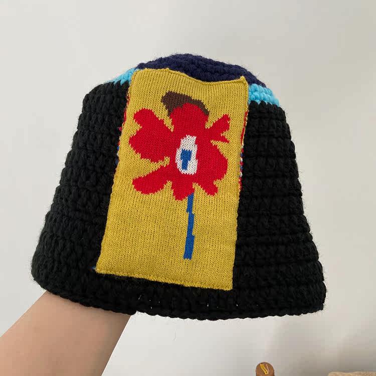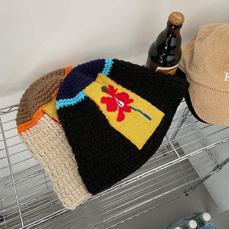 Korean ins niche design knitted wool cap wild flower fisherman hat warm basin hat show face small cold hat