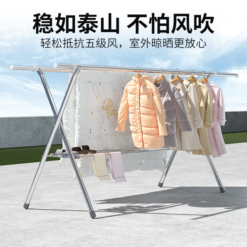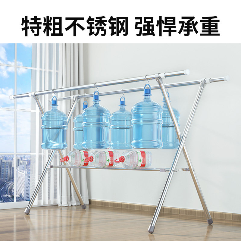 Stainless steel clothes drying rack floor-to-ceiling household balcony bedroom folding clothes drying rod windproof telescopic rod type clothes drying rack