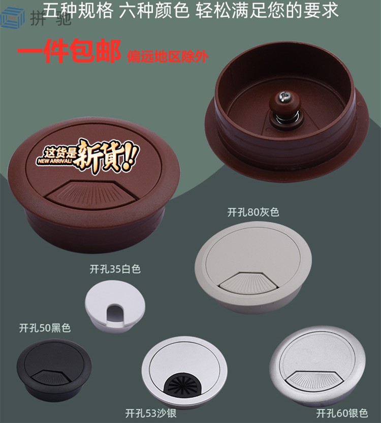 Pingchi PC outlined hole cover 50 53 60 80MM desktop plastic over the wire box desk