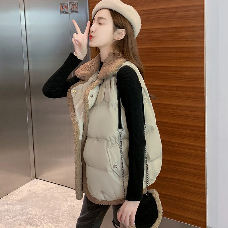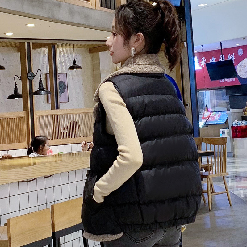 Cotton vest women's outerwear short autumn and winter Korean version loose casual cotton vest lamb wool stitching thick vest jacket