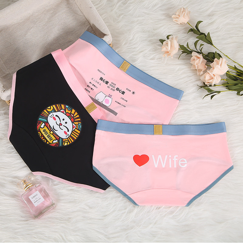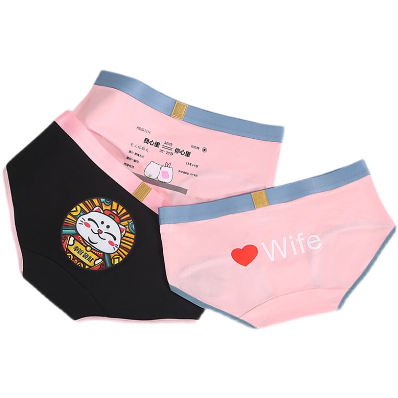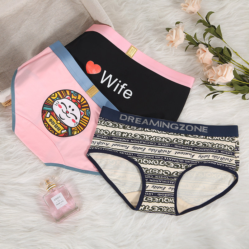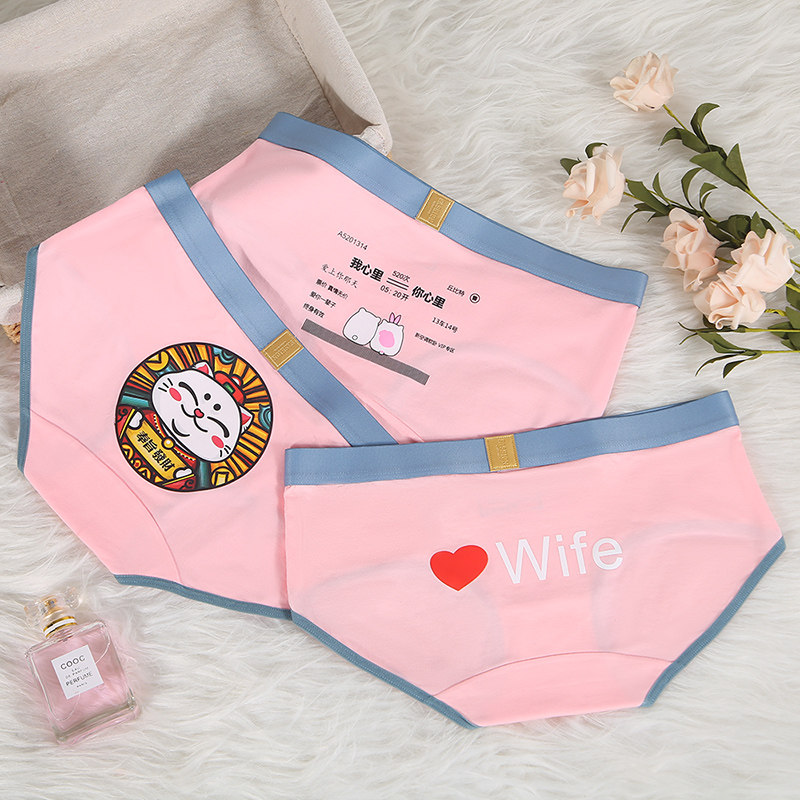 Pink red pants girls pure cotton antibacterial girls Japanese wide edge middle waist cute cartoon triangles