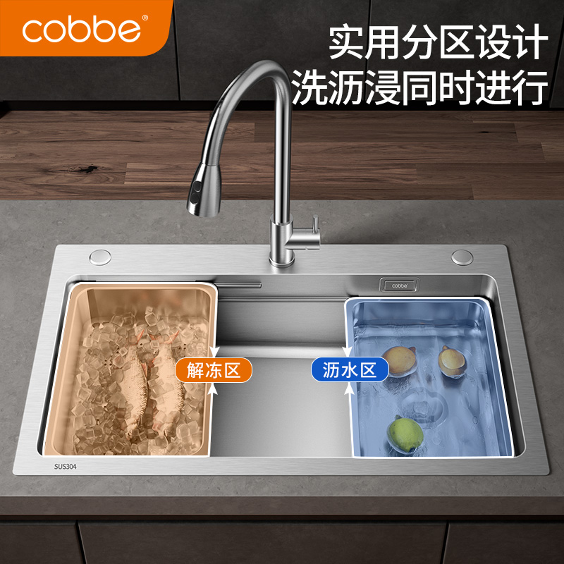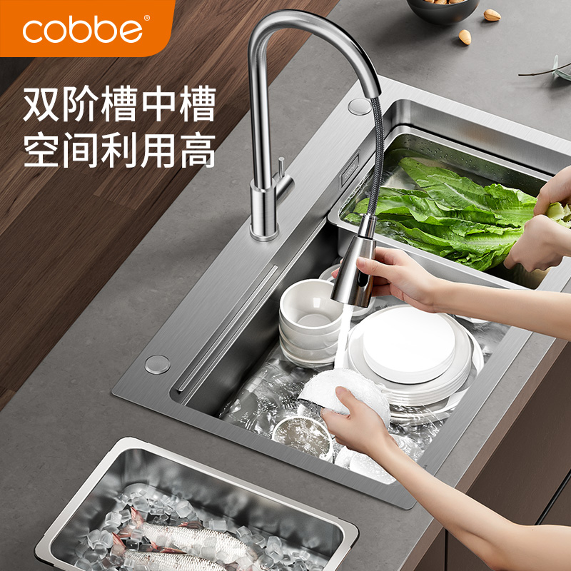(Three-slot design) Kabe 304 stainless steel handmade sink large single sink sink kitchen sink under the kitchen sink