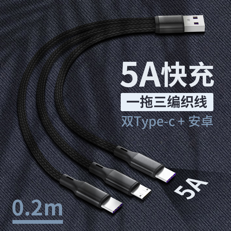 Data line three-in-one fast charging a three-charging wire instrumental 5A on-board home bulls for three heads fast plus length applicable Apple Android Huawei type-c all-purpose universal flash-charging game