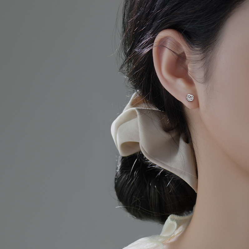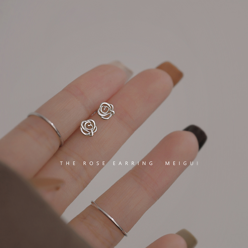 925 Silver Rose Small Ear Needle Woman 2021 New Tide Precious French Romantic Headhole Ear Accessories