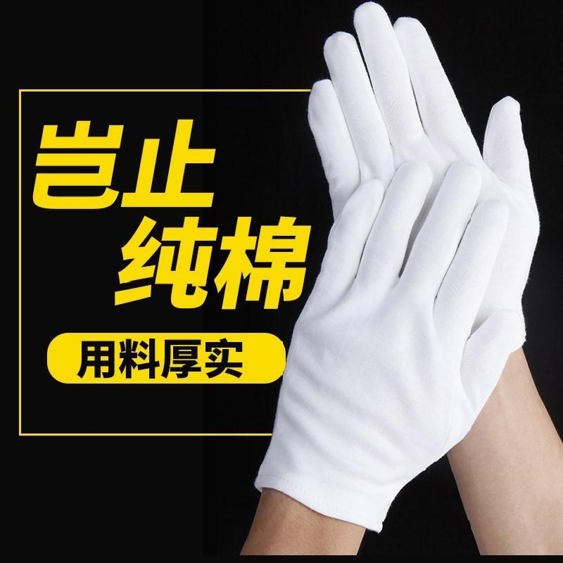 100% high-quality cotton Wenwan special gloves 12 pairs of white 12 pairs (cotton thin section) men's plus size white 12 pairs (pure cotton thick section) women's special white 12 pairs (pure cotton thin section) for men
