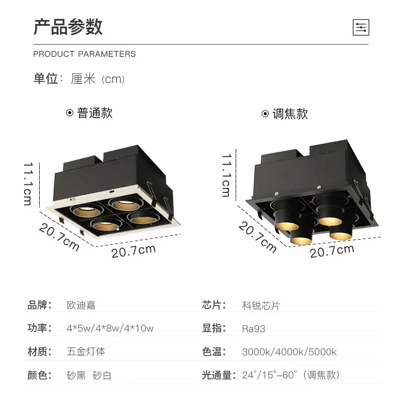 Black and white -4 * 5W-warm light 3000K black and white -4 * 5W-neutral light 4000K black and white -4 * 8W-warm light 3000K black and white -4 * 8W-neutral light