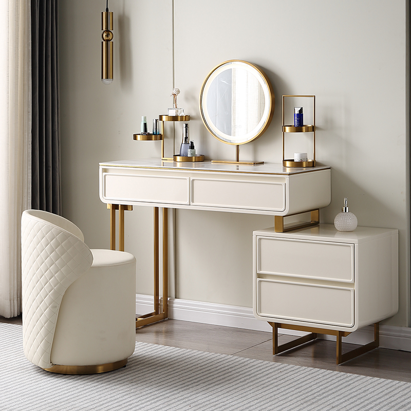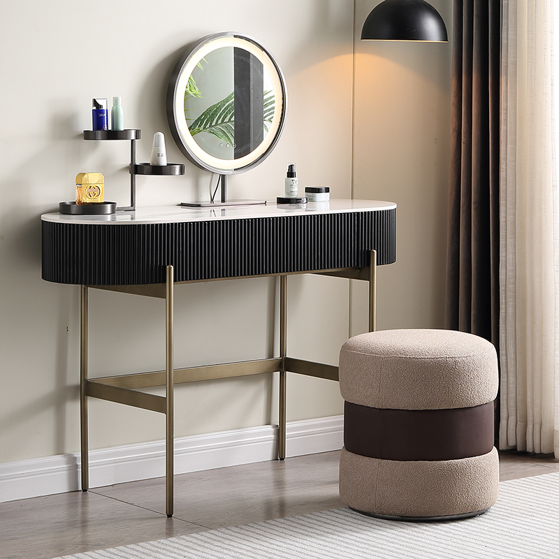 Makeup stool Makeup Chair Modern Minima Bedroom Light Lavish Minimalist Backrest Makeup Chair Home Round Lamb Suede Stool