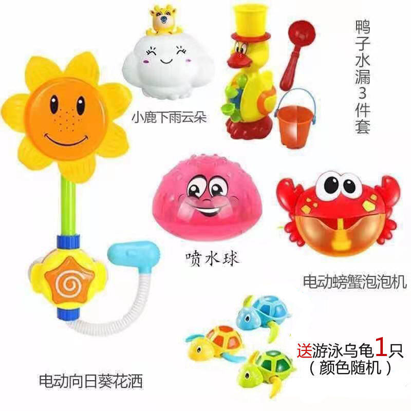 Baby bathing swimming water artifact shower water soft glue net red vibrato yellow duck sunflower toy set